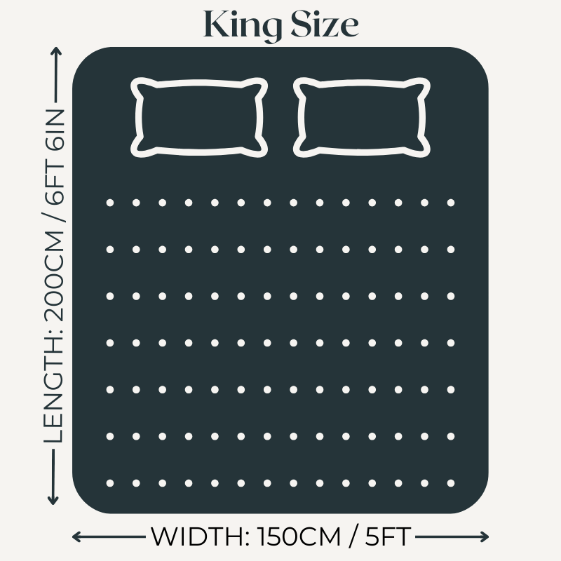 King Size: Dimensions are 150cm x 200cm (5'0" x 6'6"). Offering ample space for couples to sleep comfortably, this size is also great for individuals who enjoy extra room.
