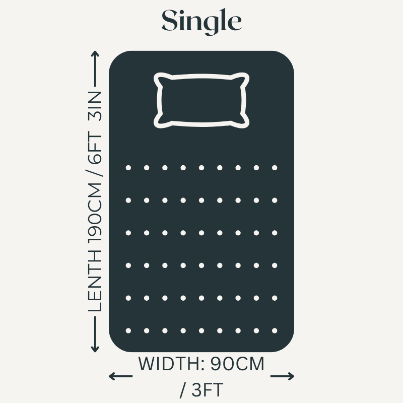 Single: Dimensions are 90cm x 190cm (3'0" x 6'3"). Ideal for children's bedrooms, guest rooms, or smaller bedrooms where space is limited.